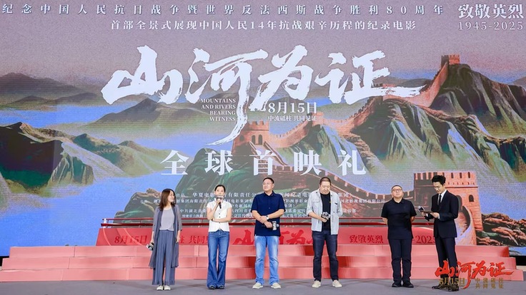 8月11日,纪录电影《山河为证》全球首映礼在中国共产党历史展览馆举行,来自社会各界的上千观众参加活动并观看了电影,现场反响非常热烈。这一首部全景式展现中国人民14年抗战艰辛历程的纪录电影将于8月15日全国上映。