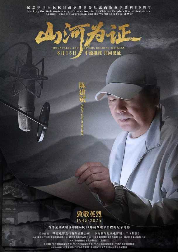 担任影片解说的著名演员陈建斌虽因其他工作无法亲临首映式,但在现场播放的一段工作花絮中,让观众看到了陈建斌对《山河为证》配音工作的认真与投入。他将这份重要的使命看得无比庄严,不苟言笑、字字推敲、精雕细琢,每一个语气和情感细节都反复斟酌,只为呈现最准确和动人的表达。