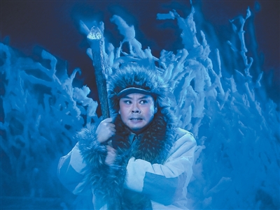 创作之初,我们就奔着“用抗联精神演好杨靖宇”的方向努力。关于人物塑造,我和编剧曾有过一次讨论——程斌叛变为了母亲的说法是不成立的。杨靖宇难道没有亲人吗?难道不爱他的亲人吗?最终的选择,只因在他的心中,比小家重千钧的是国家。就这样,“英雄末路”那场戏中大段的二黄唱腔被创作出来:牺牲前,杨靖宇想到了母亲,想到了妻子,想到了孩子……人生的最后时刻,“杨靖宇”用一段委婉细腻、动人心魄的“吟板”让观众真切感受到英雄丰富的精神世界、情感世界。唱腔设计方面,我们运用大量的高派声腔艺术特点,使之融会贯通,用声腔传达情感。