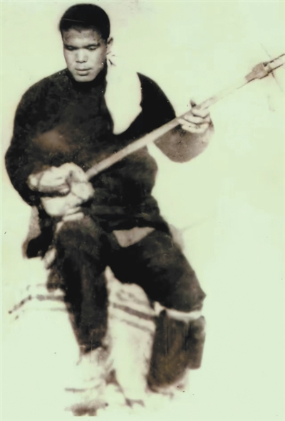 1944年,陕北说书艺人韩起祥在延安演出(照片出自《中国曲艺志·陕西卷》)。