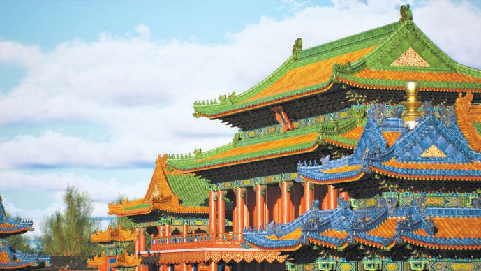 “早先做数字复原,古建筑的构件、彩画等都用贴图做成,完成的建筑模型也不具备交互性。而现在所采用的建模和渲染技术都与之前完全不同了,我们把建筑构件甚至整座建筑做成三维数字模型模块,彩画也都重新绘制。我们中心自主研发的‘明清官式建筑参数化及模块化数字建模方法’,就像用数字‘积木’重新建造一遍圆明园。”吴晓敏展示着数字模型的细节,屏幕上建筑檐下斗拱结构繁密华美,彩画绚烂;琉璃瓦、琉璃构件流光溢彩,甚至连瓦间的灰缝看起来都异常真实清晰。