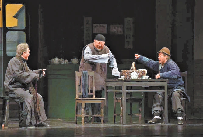 北京人艺经典话剧《茶馆》剧照。 北京日报记者 方非摄