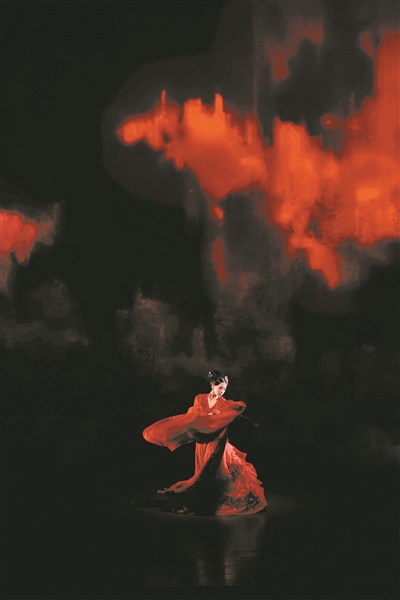 花神一角在舞剧《牡丹亭》中以女性角色出现,其地位被提升到“史无前例”的高度。她的存在不仅贯穿全场,也集花神、杜母和“爱神”的多重身份于一体,以无限深情呵护着杜丽娘的自我发现与探索之路。她在“花儿为什么这样红”的旋律变奏之中起舞,以卡门之姿,映照着杜丽娘因观花而对自身之美的觉醒;又于《写真》中和杜丽娘在不同空间呼应着“叠舞”,表现杜丽娘以花朵盛开又将凋亡的自然之景自况自怜。花神在冥府中为杜丽娘的生还与判官周旋,又引领柳梦梅找到画像,还要不断观察这对小情侣的动静,简直像妈妈一样“操碎了心”。