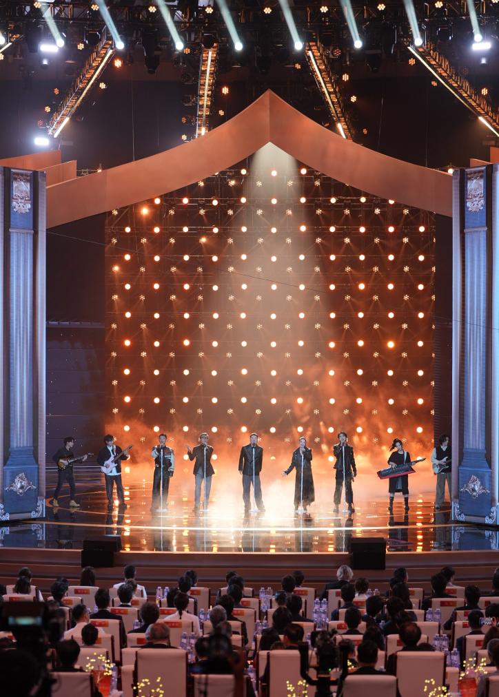 4月16日,歌手陈楚生(右二)在开幕式上演唱歌曲。新华社记者谢晗 摄