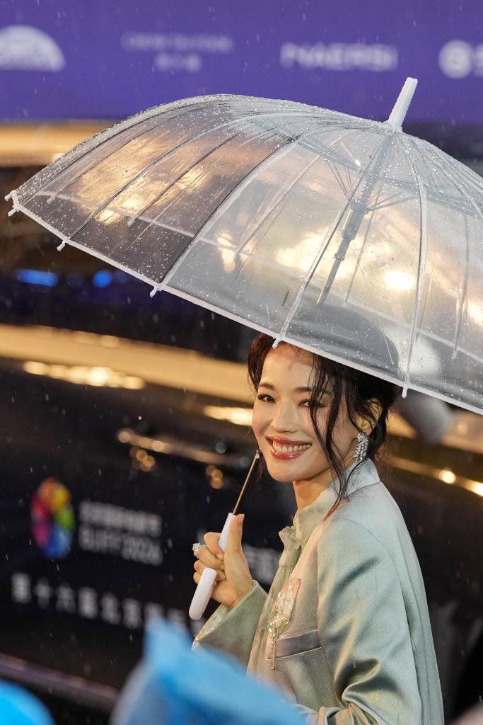 4月16日,第十六届北京国际电影节北京市场项目创投终审评委会主席,演员、导演舒淇亮相开幕红毯。新华社记者 鞠焕宗 摄